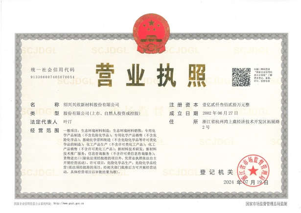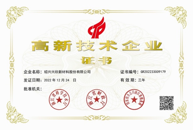 紹興興欣新材料股份有限公司成立于2002年06月27日,占地面積122畝,位于杭州灣上虞經(jīng)濟(jì)技術(shù)開發(fā)區(qū)拓展路2號,現(xiàn)有職工200余人,專業(yè)技術(shù)人員50余人;博士、碩士研究生30余人組成的一支知識型、專業(yè)化的技術(shù)科研團(tuán)隊(duì)。公司面向全球市場,專業(yè)開發(fā)電子化學(xué)品、環(huán)保化學(xué)品、醫(yī)藥中間體、高分子材料等先進(jìn)新材料重點(diǎn)領(lǐng)域的省級科技型企業(yè);建有浙江上虞、安徽東至兩個(gè)生產(chǎn)基地。目前為“國家高新技術(shù)企業(yè)”、浙江省“隱形冠軍”企業(yè)、浙江省專精特新中小企業(yè);建有“省級”研究開發(fā)中心,共建天津大學(xué)浙江紹興研究院電子化學(xué)品研發(fā)中心。